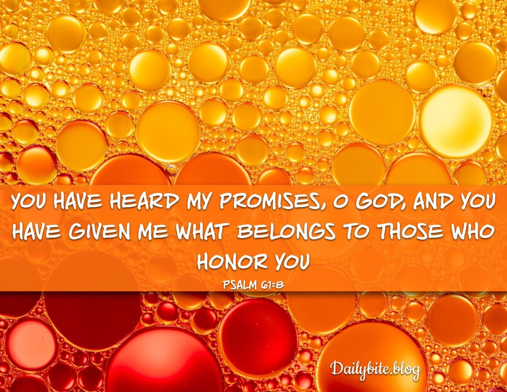 This psalm was written during the last years of David’s life. He writes confidently of what God has done and how he desires to live with the Lord forever. He reminds God that He has heard David’s promises and given David what belongs to those who honor God. The list of things that belong to those who honor God is a long one that extends to eternal life.
