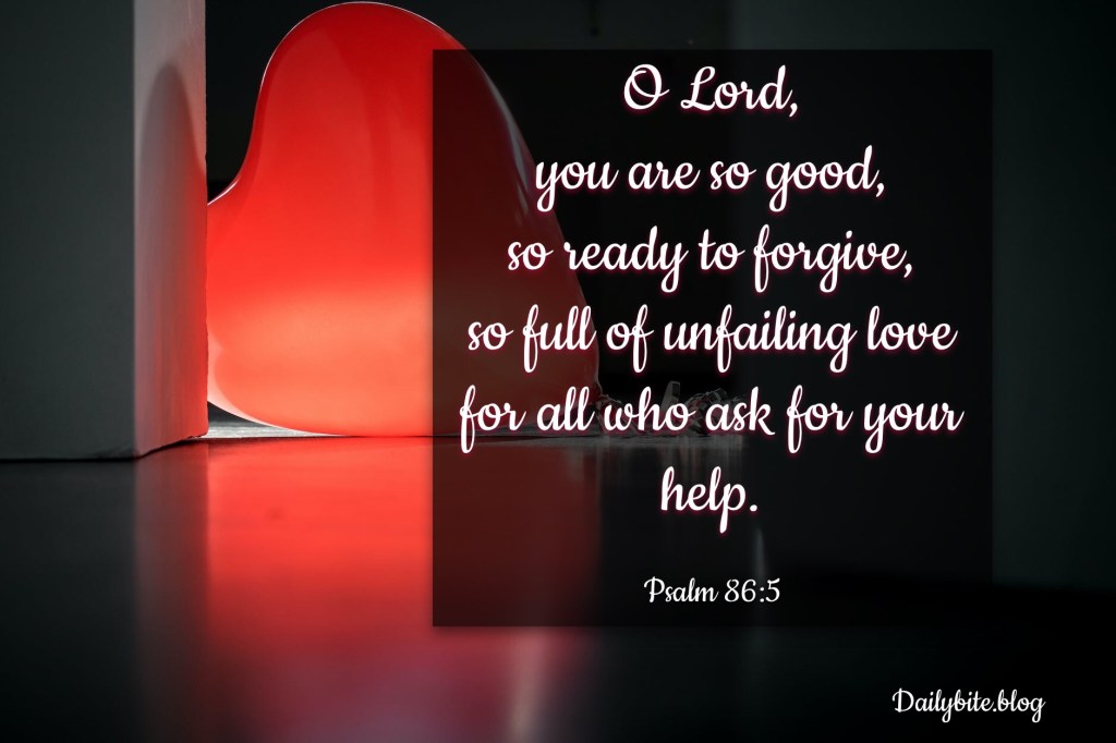 O Lord, you are so good, so ready to forgive, so full of unfailing love for all who ask for your help. Psalm 86:5