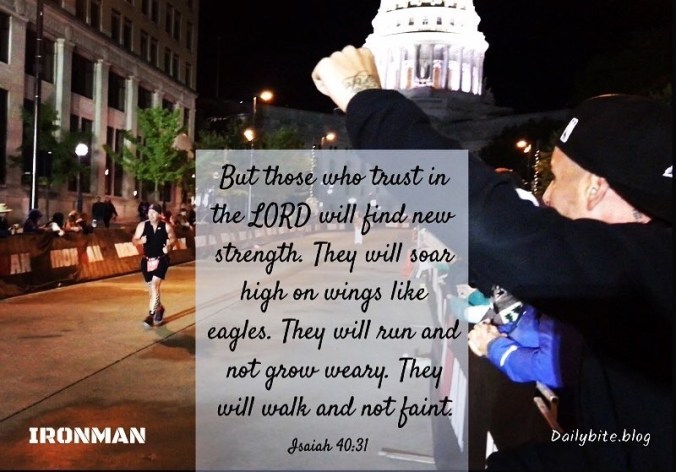 Today’s word has to be: Ironman. My husband’s ironman journey is a true testimony to faith, prayer and the mighty power of Jesus.